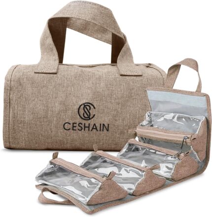 4-in-1 Hanging Toiletry bag – Roll-Up Makeup Bag – 4 Detachable PVC Zip Pouches – 600D Oxford Fabric, Versatile Travel Toiletry Organizer Bag – Makeup, Cosmetics, First Aid, Medicine Personal Care,