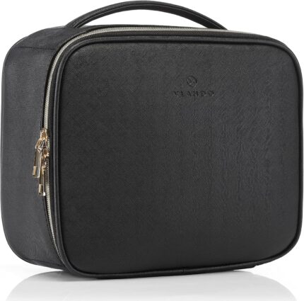 Wandering Nature Makeup Bag, Travel Make Up Organizer Cosmetic Brush Bags Case for Women in Eco Vegan Leather