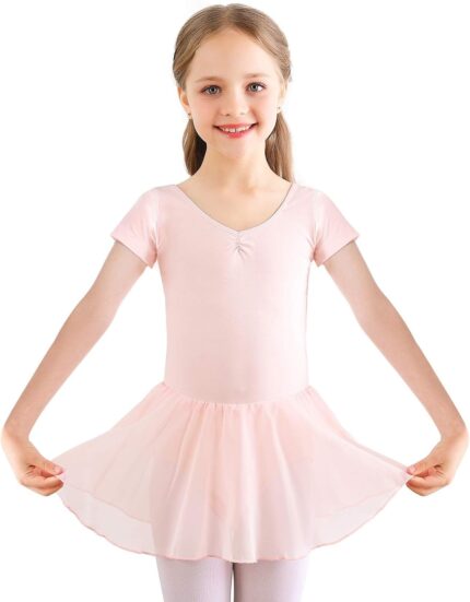 Homodoskey Kid Girls Ruffle Flutter Sleeve Ballet Dance Dress Girls Leotards for Dance Ruffle Sleeves Criss-Cross Back Ballet Tutu Skirted Dresses for 2-12Years (UAE/KSA, Age, 12 Years, Regular, Pink)