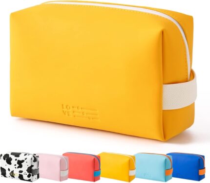 Cosmetic Bag Makeup Bag for Purse Pouch Travel Beauty Zipper Organizer Bag Gifts for Girl Women, PU Leather Washable Waterproof Make Up Organizer for Brushes Beauty Eyeshadow Palette Lipstick (Yellow)