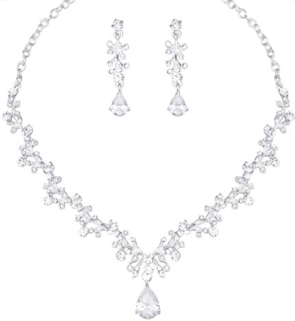 HONGLU Clear Crystal and Cubic Zircon Necklace and Earrings Jewelry Set for Women Wedding Accessories