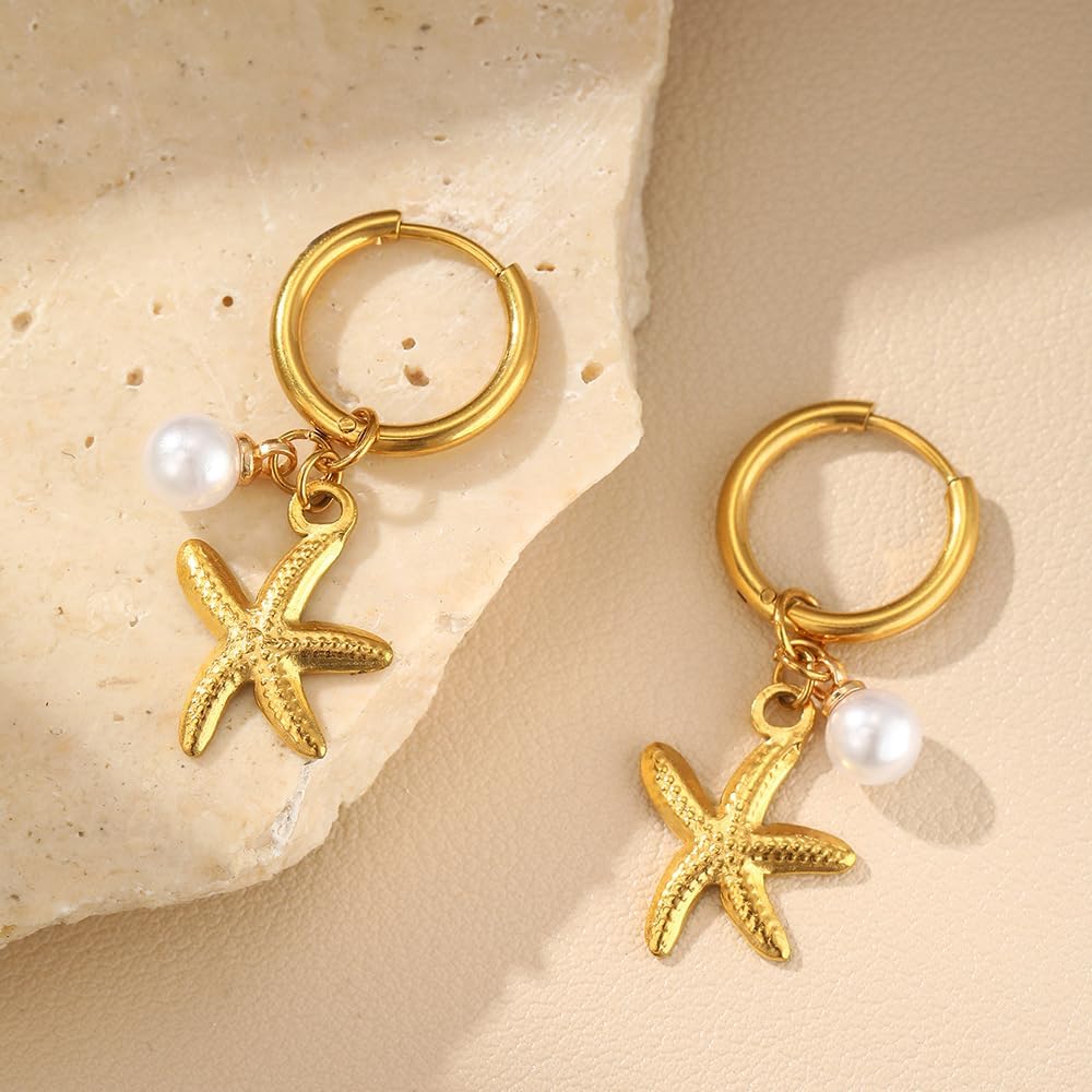 1 Pair Gold Beach Style Earrings, Chic Pearl Drop Earring for Women, Fashionable Gold Tone Jewelry for Summer Outings, Trendy DanglingAccessories for Casual and Party Wear, (Gold)
