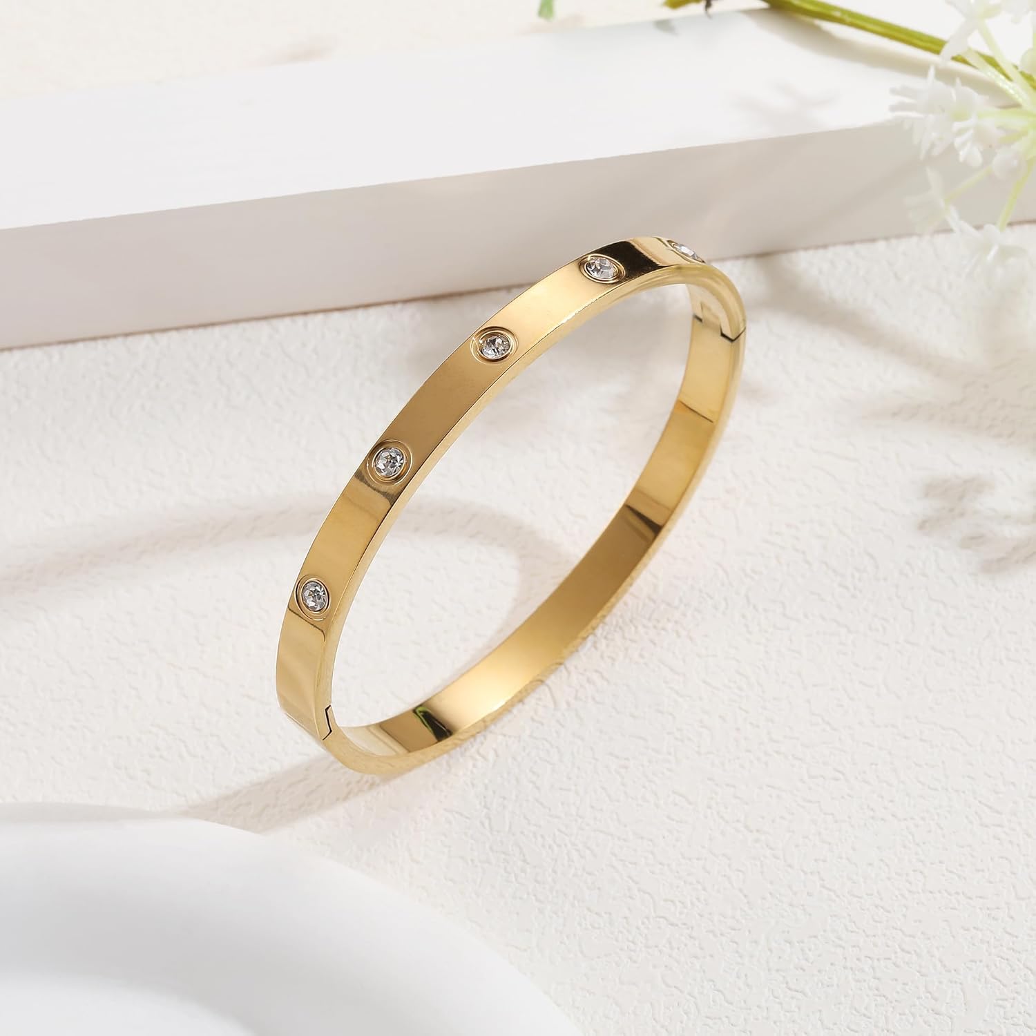 18K Gold Plated Clover Bracelet Love Bangle Set For Women Stackable Lucky Friendship Bracelet With Adjustable Extension Trendy Jewelry Gifts For Wives Girlfriends Mothers And Daughters