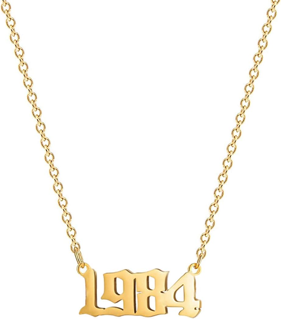 18K Gold Plated Stainless Steel Year Necklace Birthday Year Number Necklace Anniversary Memorable Jewelry for Women