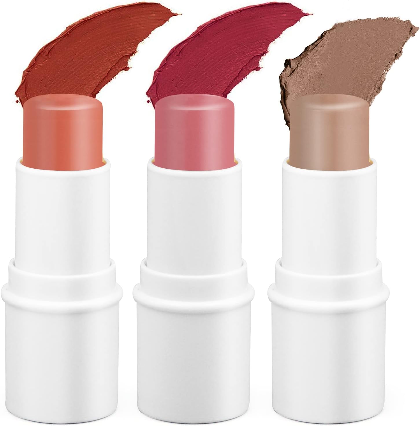 【3 Pcs Makeup Stick】 This cosmetic set includes 3 colors of multi stick makeup in multiple functions. One set applies to cheeks, eyes and lips, and meets the daily makeup needs of the whole face.