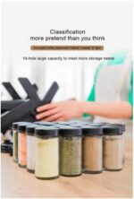 Practical Design: The shape of the Ferris wheel makes the spice rack stable and not easy to shake. The material of the bracket and the glass jar is not easy to be stained with oil and seasoning, and it is easy to clean. The spice rack has 18 large-diameter 100 ml glass jars, and one spice rack can meet all the seasoning storage in the kitchen.