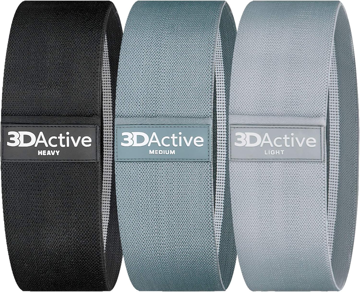 3DActive Fabric Resistance Bands for Legs and Butt. Wide Non-Slip Hip Band Set for Home and Gym Workouts. Exercise Guide and Carry Bag Included