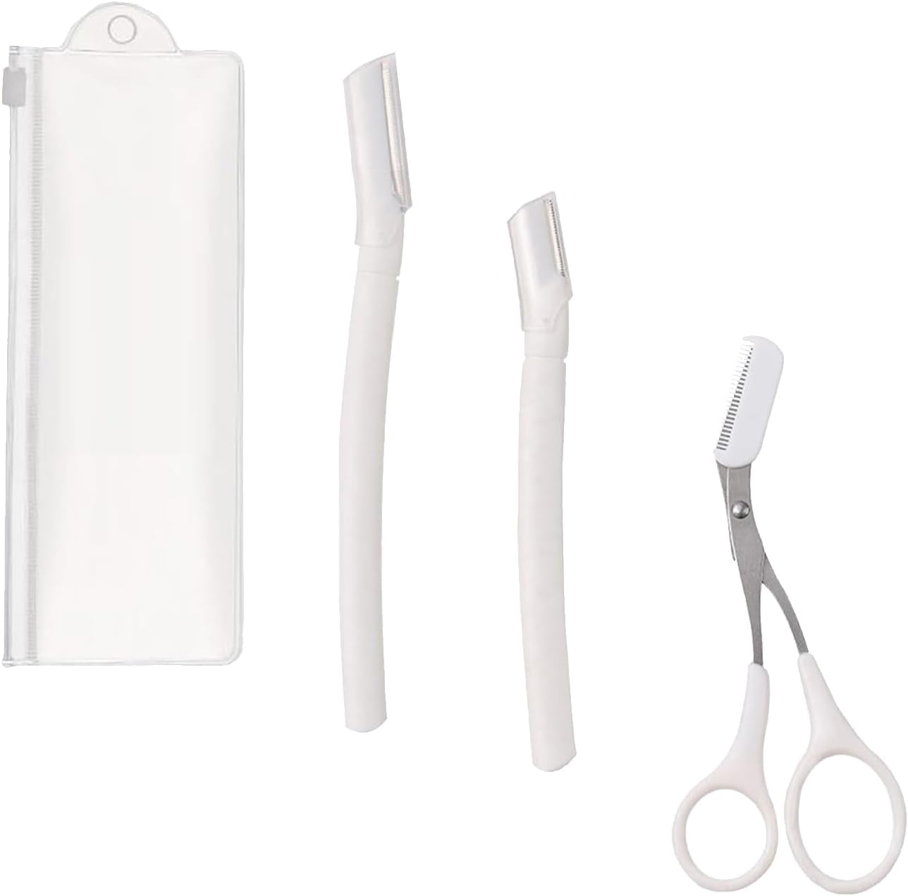 3PCS Eyebrow Scissors and Comb Set – Professional Eyebrow Trimmer Kit with Razor – Non Slip Small Grooming Tool for Women Men – Hair Removal Beauty Tool (White)