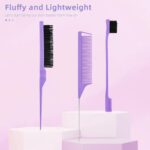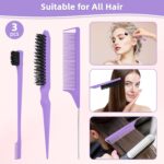 3PCS Professional Hair Styling Tool Set, Teasing Brush, Edge Control Brush and Rat Tail Comb for Hair Styling (Purple)
