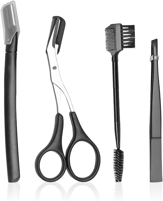 ✅ All-in-One Grooming Set Includes pointed tip tweezers, precision scissors, eyebrow razor, and soft eyelash brush – ideal for eyebrow and facial hair grooming.