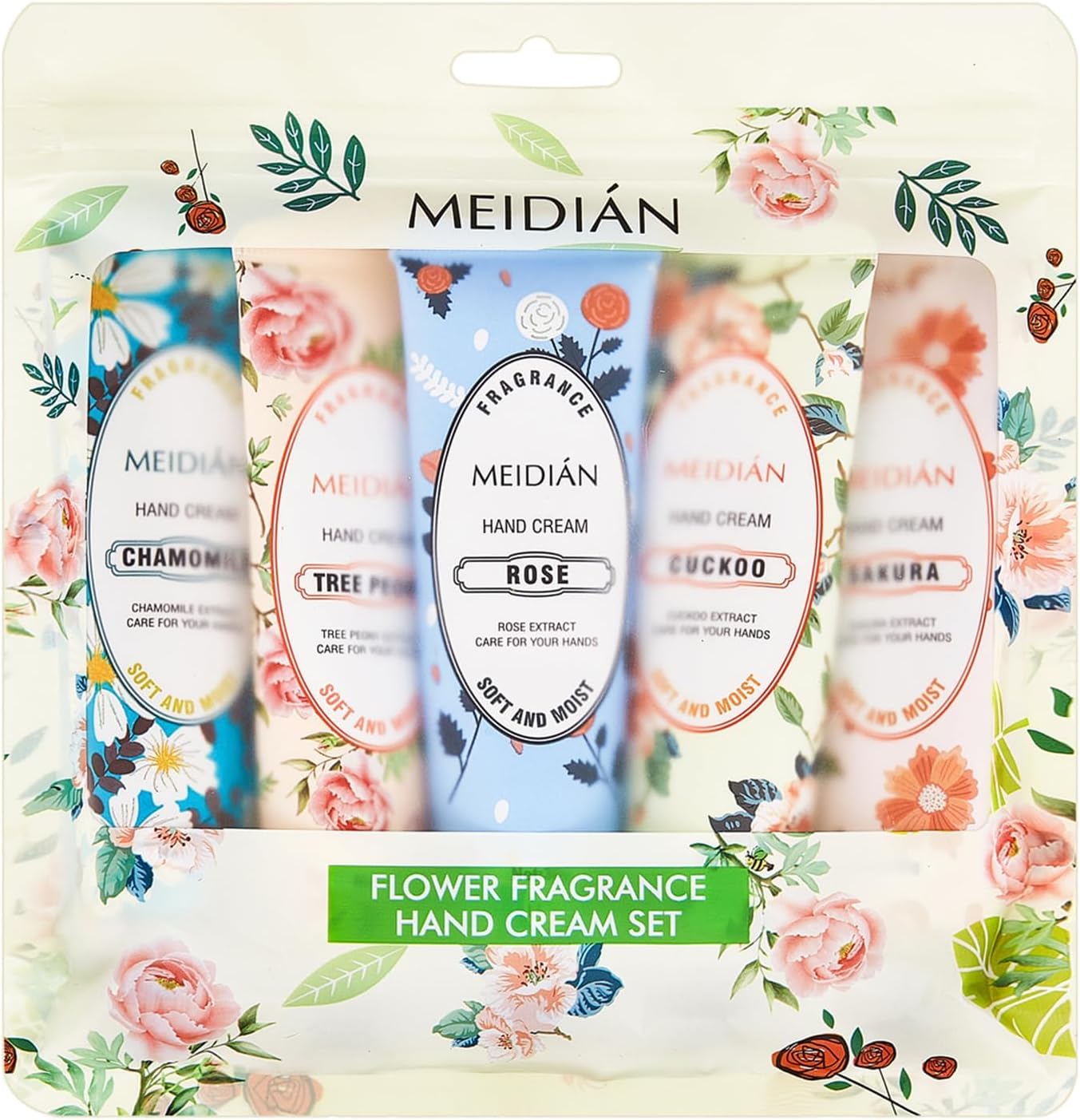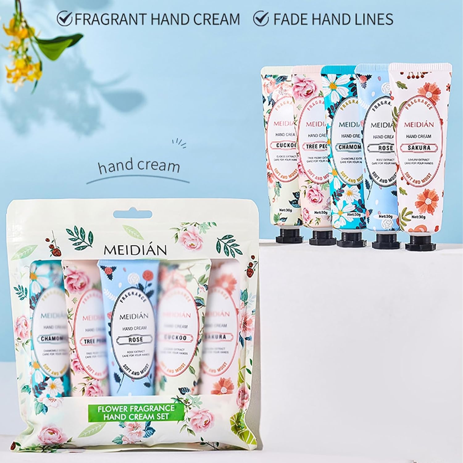 🌸5 Pack Natural Hand Cream Gift Set: Enjoy a collection of 5 unique fragrances including rose, sakura, chamomile, tree peony, and cuckoo. Perfect for sharing with friends and family or choosing a scent to match your mood. Provides effective protection against dry and cracked skin, keeping your hands soft even in winter.