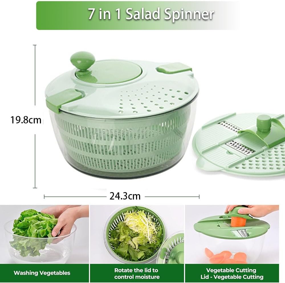 7 in 1 Multifunction Kitchen Gadget set 4L Salad Spinner Vegetable Dryer Grater Slicer Large Salad Spinner and 5 Blade Slicer, Drainer, Vegetable Dryer with a Pouring Spout