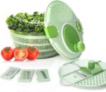 MULTI-FUNCTIONAL SALAD MAKER – Wash, dry, chop, grate, slice, serve and store your delicious creations so you can bring them to parties. BUILT IN SLICER – The separate lid includes interchangeable julienne and grader for meats, cheese, carrots, cucumbers, and a hand guard so you can prepare salad like a pro.