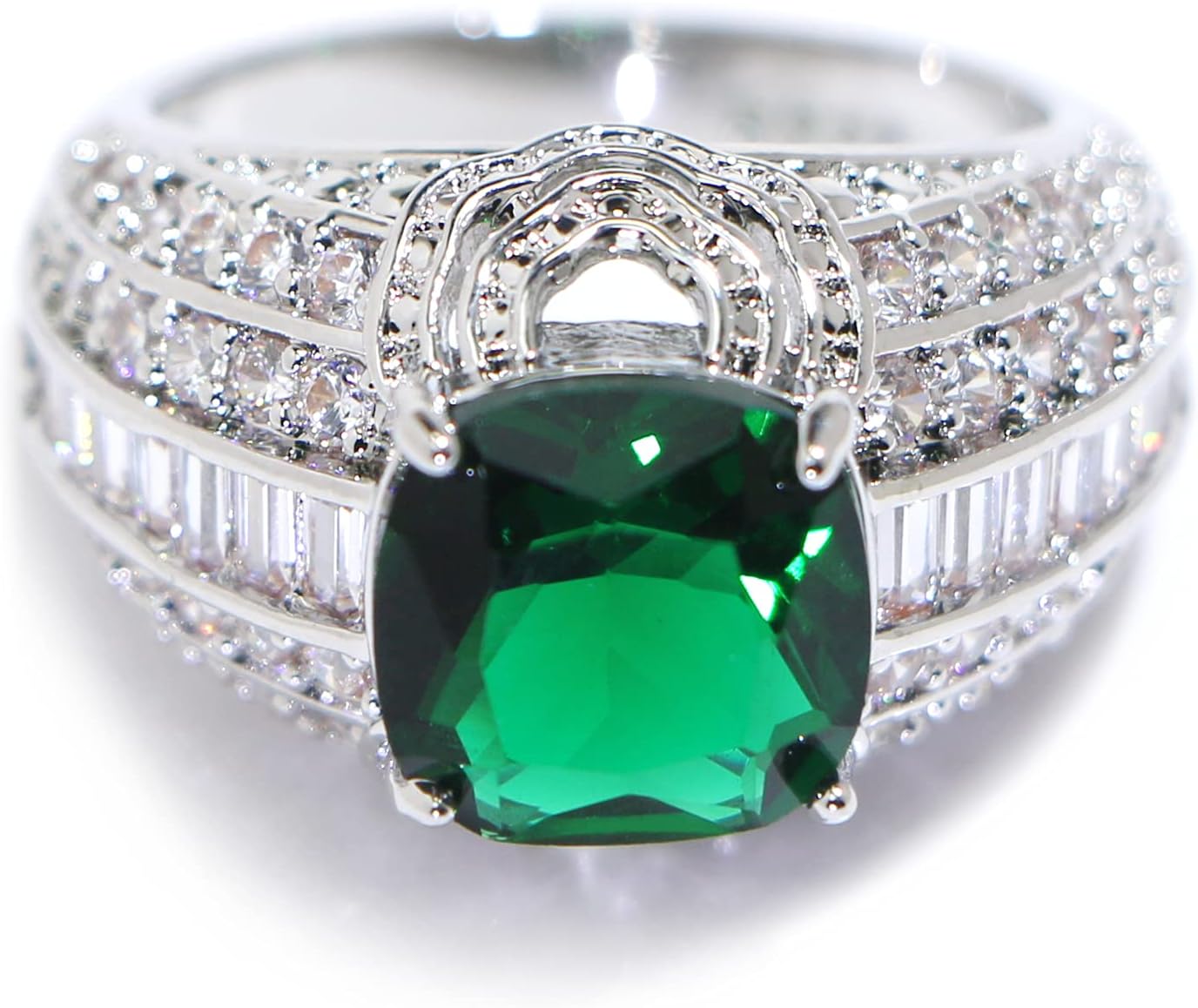 925 Sterling Silver Shiny Full Diamond Emerald Ring Cubic Zirconia Rings Gemstone Ring CZ Diamond Eternity Engagement Wedding Band Ring for Women