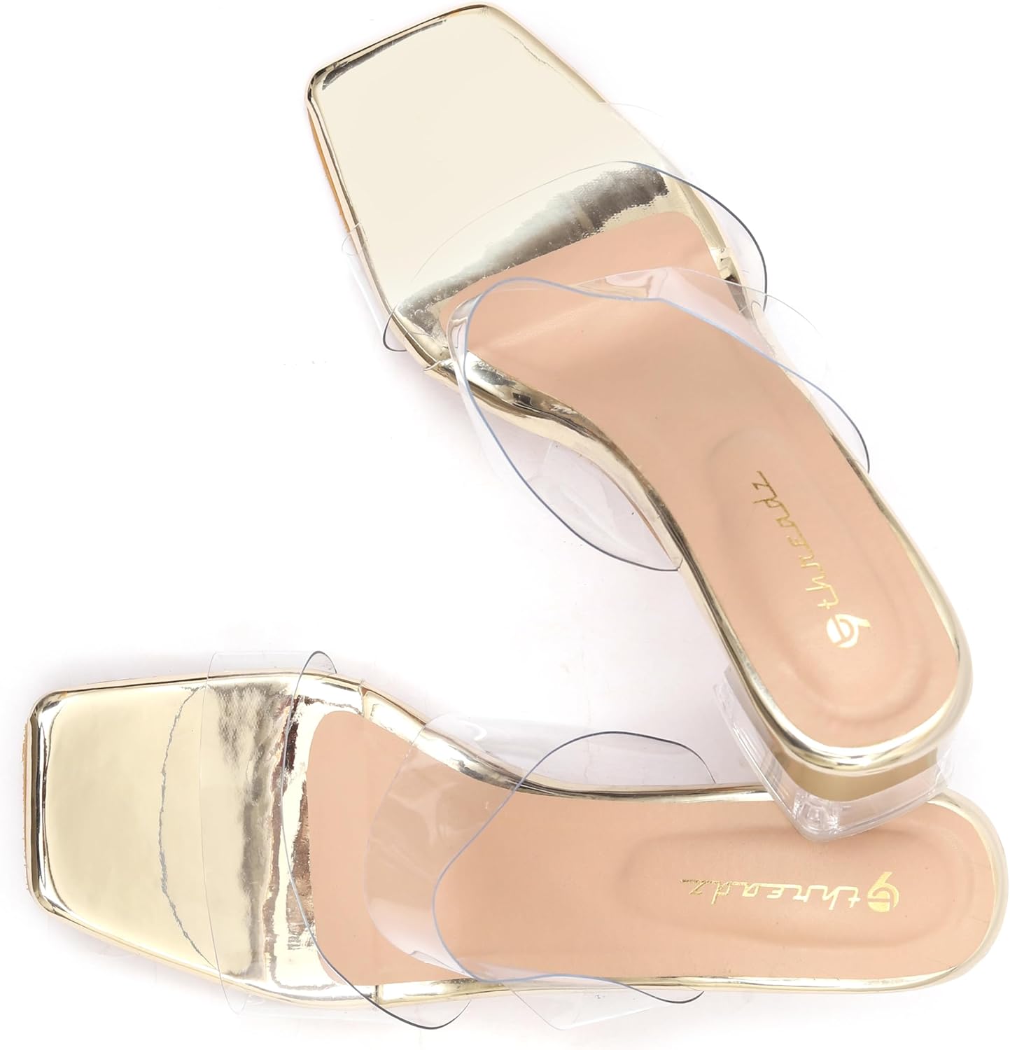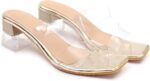 9threadz Women’s Transparent Block Heel Sandals | Stylish Open Toe Slip-On for Casual & Party Wear