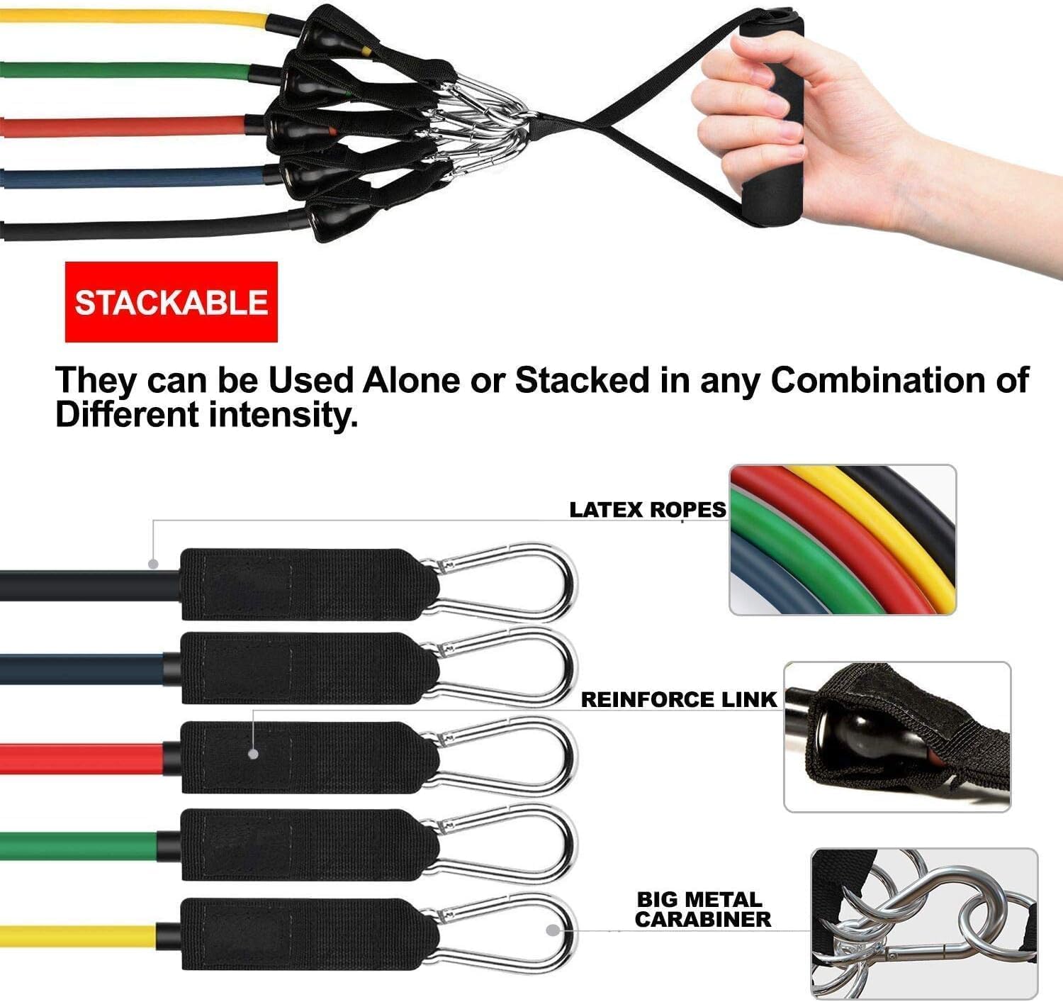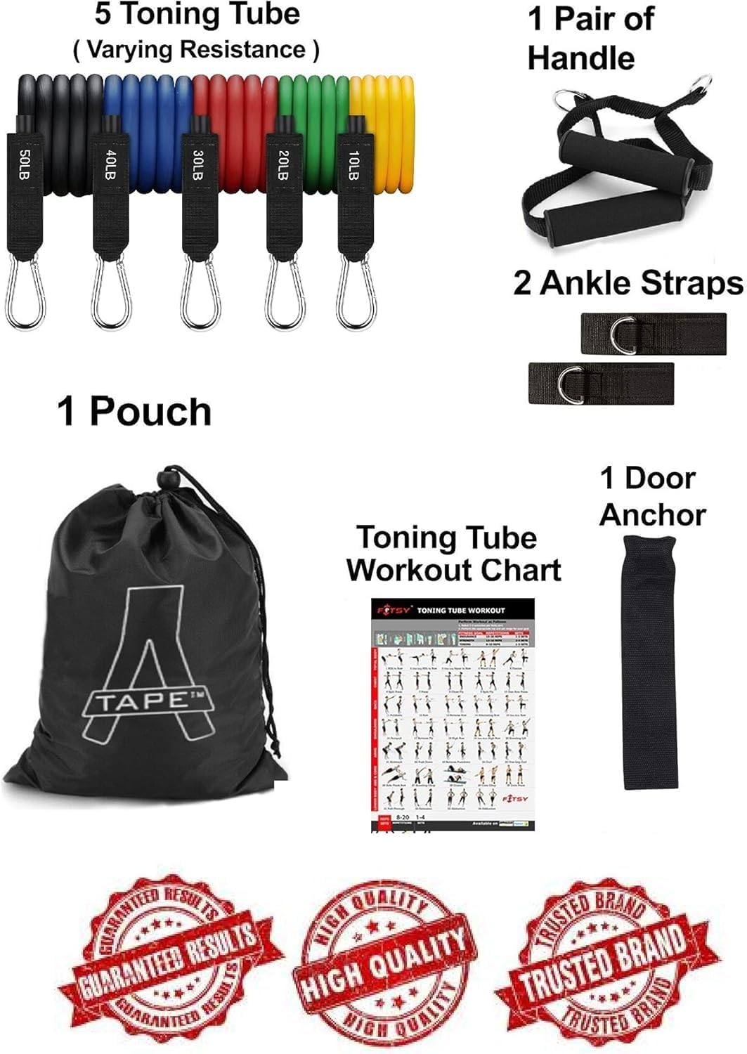Premium Resistance Tube Band Set: Perfect for setting up a home gym, this kit has everything you need for a full body resistance work out, Includes 5 tube bands, 2 handles, 2 ankle straps, and 1 door anchor