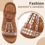 Ablanczoom Womens Sandals Summer Shoes: Comfortable Ankle Strap Dressy Rhinestone Casual Bohemian Flat Sandal for Beach Walking Vacation, Brown, 7.5