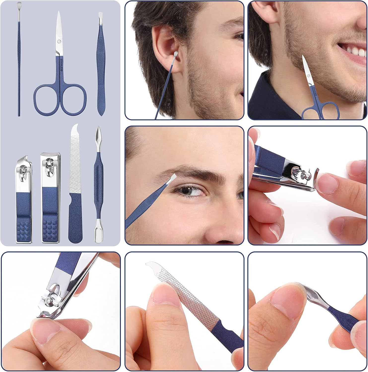 Manicure Set: Aceoce Mens women nail grooming kit travel manicure kit contains nail, toenail, facial care tools, multifunctional include hand care,foot care, facial care tools in a portable storage case .Keep the personal care tools in a storage case , you would not loose your nail clippers anymore !