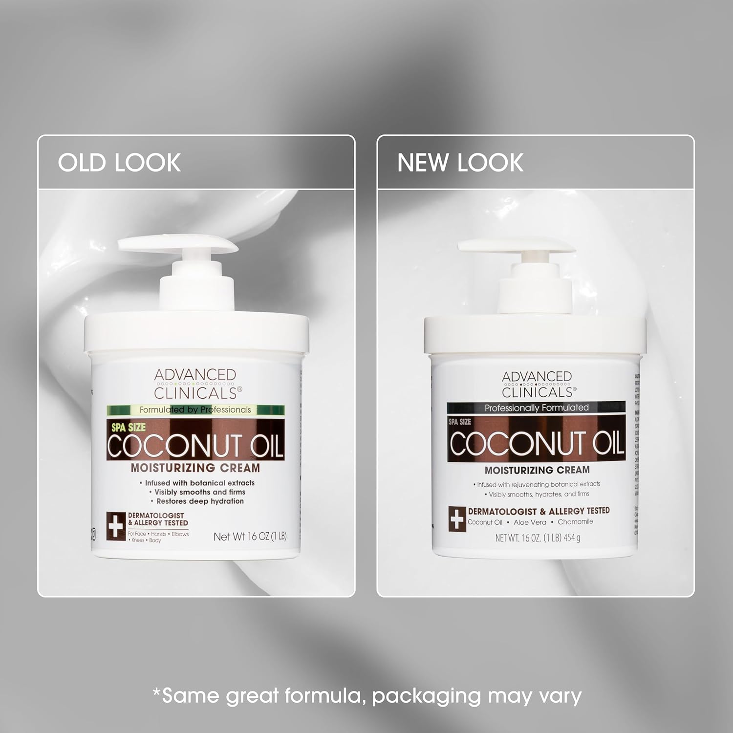 Advanced Clinicals Coconut Oil Cream. Spa size 16oz Moisturizing Cream. Coconut Oil for Face, Hands, Hair.