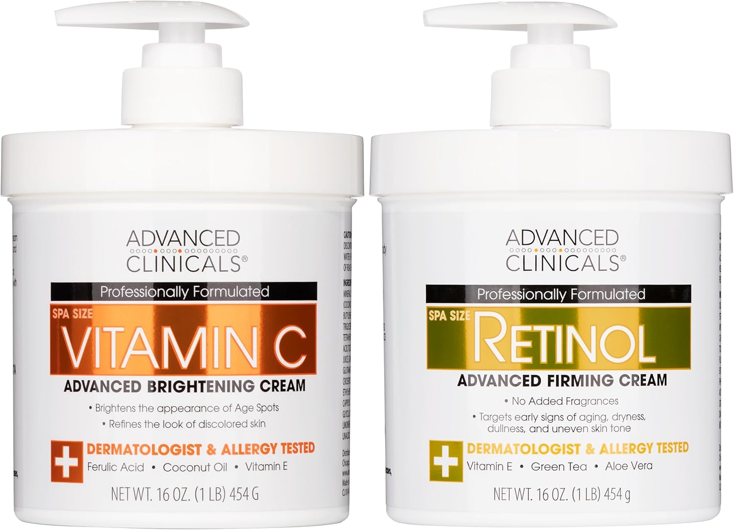 Advanced Clinicals Retinol Body Lotion + Brightening Vitamin C Cream 2pc Skin Care Set | Skin Tightening Body Moisturizer & Face Lotion | Crepey Skin Care Treatment | Skin Care Products, 2pc Set