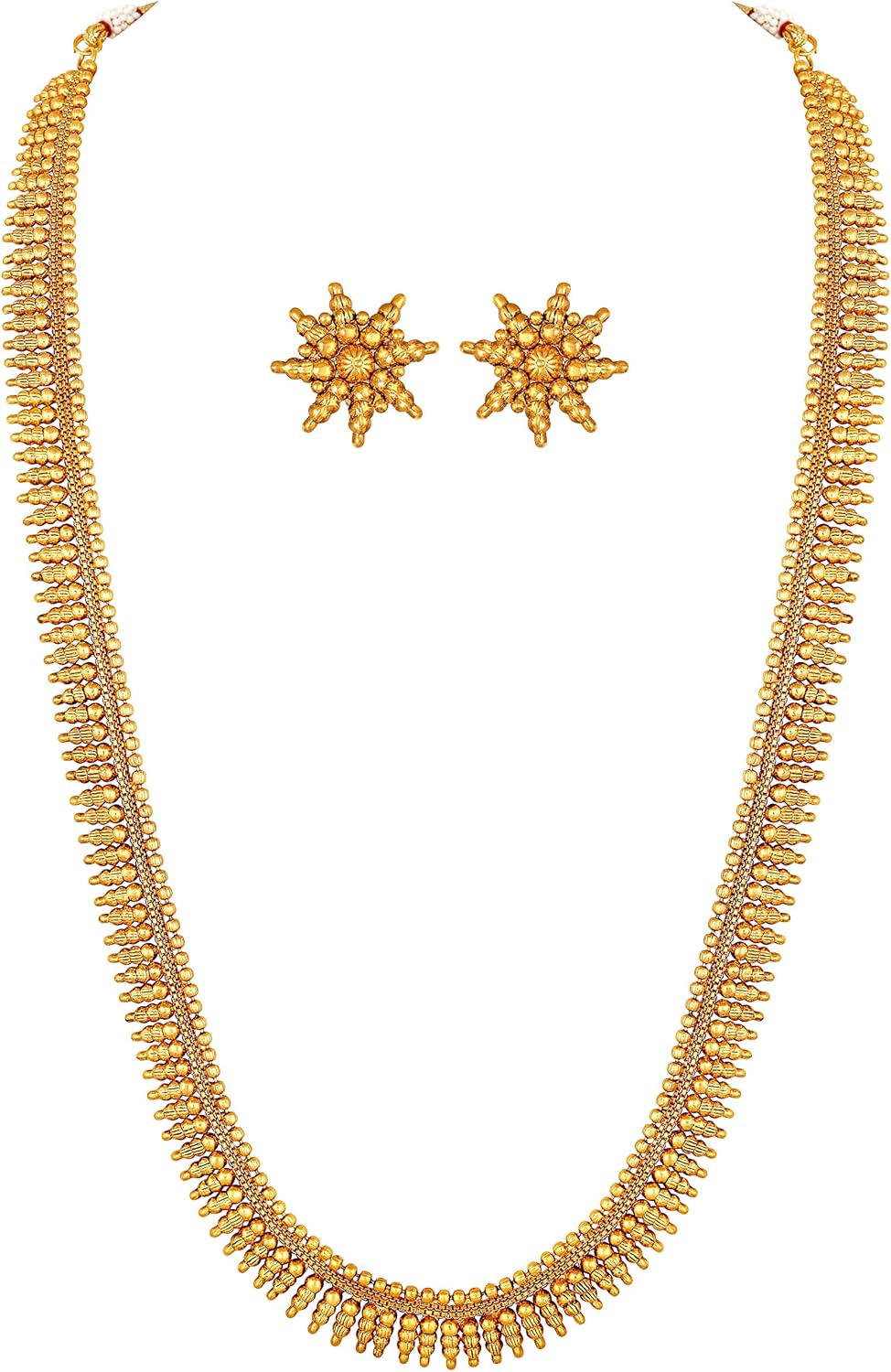 Aheli Bollywood Traditional Gold Tone Long Necklace Earrings Jewelry Set for Women Wedding Party Ethnic Fashion Wear