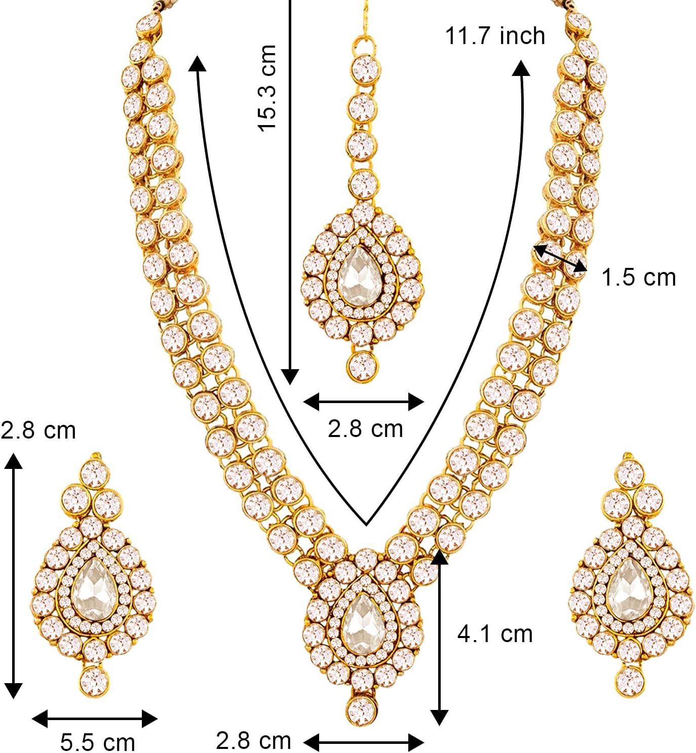 Product Description – Aheli welcomes you to the world of designer Indian fashion and traditional jewelry. World-class Craftsmanship, Aheli jewelry makes people remember not only the jewelry itself, but also the woman who wears that jewelry. We have a wide range of Jewelry Collection that includes – Pearl Jewelry Sets, Crystal/ CZ Jewelry Sets, Indian Bridal Sets, Kundan Jewelry Sets, Gold Forming Jewelry Sets, Antique Jewelry Sets, Enamel Jewelry Sets, Oxidized Jewelry Sets, Dangle Drop & Jhumka Earrings, Pearl Earrings, Stud Earrings,CZ Crystal Earrings, Gold Foaming Earrings, Oxidized Earrings, Cuff Earrings, Ear Chain Earrings, Silver Jewelry earrings Sets and many more. Love for jewels never fades away! Jewelry is one of the most spectacular & popular gifts. Perfect gifts for bridesmaids, best friend, girlfriend, wife, mother or for someone you want to show love and can be gifted on occasions like Wedding, Valentines, Birthdays, New Year, Christmas, thanks giving, mother’s day.
