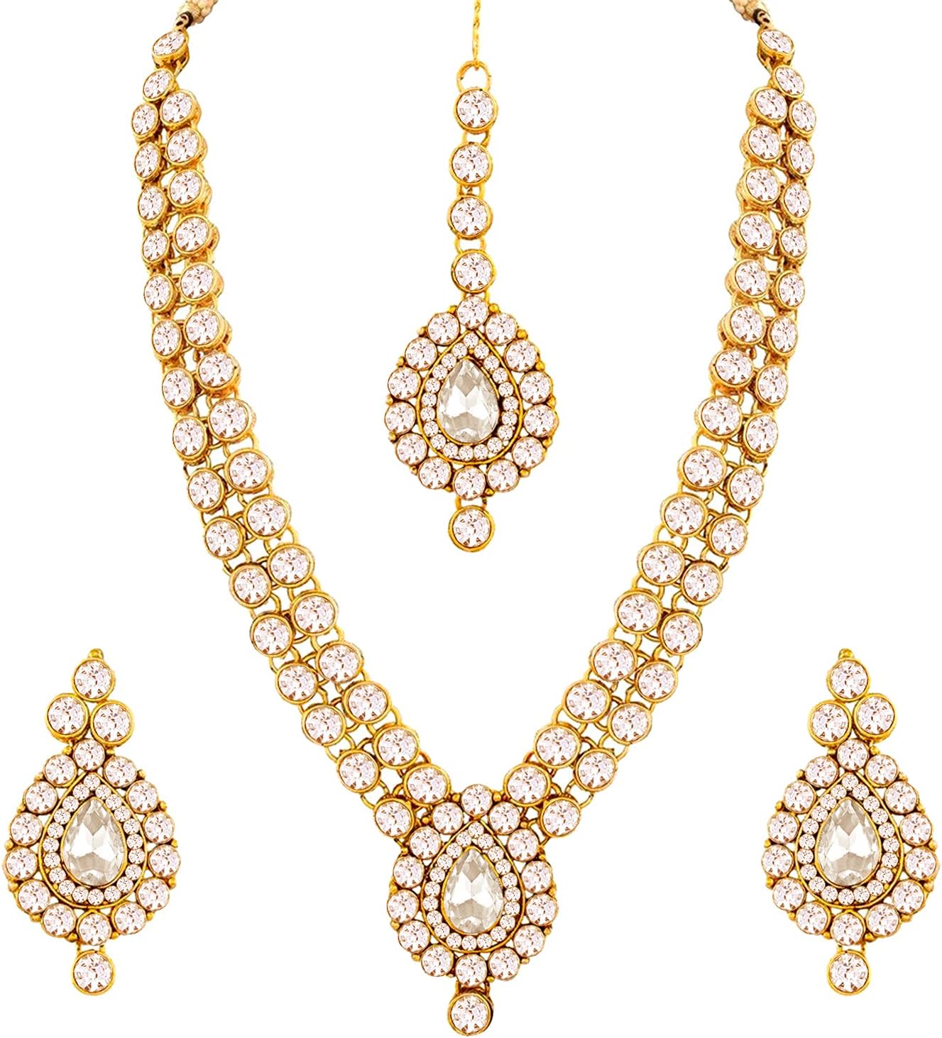 Aheli Ethnic Wedding Party Wear Gold Tone Faux Stone Studded Necklace with Stud Earrings Set Indian Bollywood Fashion Jewelry for Women