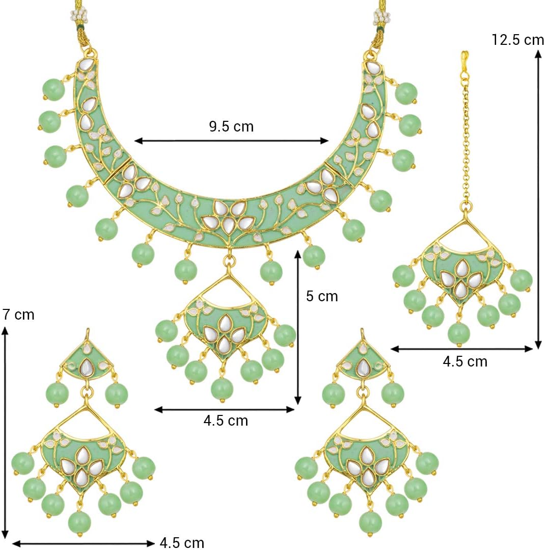 Be the first to review “Aheli Indian Ethnic Enameled Necklace Earrings with Maang Tikka Set (Mint) Wedding Traditional Fashion Jewellery for Women”