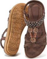 These comfortable sandals for women with classic beading is full of Bohemian atmosphere. The upper of women’s sandals is made of high-quality artificial leather, soft and comfortable, and the insole is composed of soft and breathable sponge bumps, allowing you to walk easily without getting tired. The sole made of rubber has a special texture design to improve the anti-slip effect. Gladiator sandals for women have elastic straps designed to make it easier for you to wear or take off the flats. Summer shoes for women are not only suitable for jeans or dress, etc, but also suitable for party, office, vacation, beach, walk the dog and other occasions.