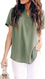 Upgrade your wardrobe with Allimy Women’s Summer Short Sleeve V-Neck Chiffon Blouses, perfect for dressy-casual or business settings. Designed with a flattering V-neckline and lightweight chiffon fabric, these tops ensure style and comfort for all-day wear. they add a chic touch to any outfit. Ideal for work, vacations, or casual outings, these tunic-style blouses come in sizes S to XXXL, offering the perfect fit for every occasion.
