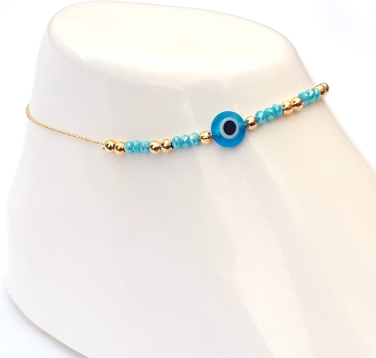 Alwan Gold Plated Medium Size Evil Eye Anklet for Women – EE3831BLEYG