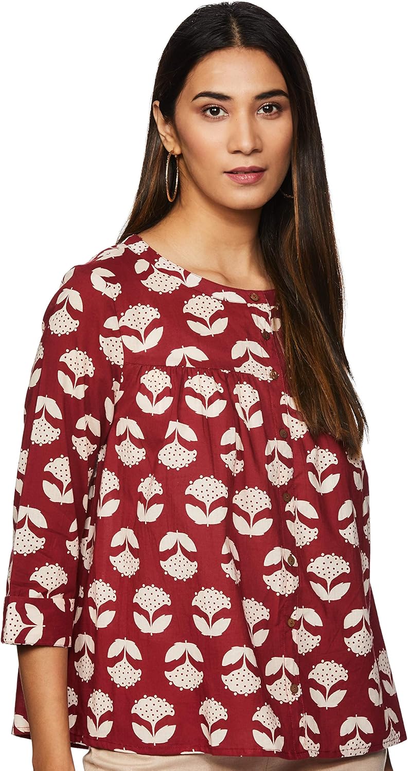 Amazon Brand – Myx Women’s Cotton Screen Print Regular Fit Short Kurti