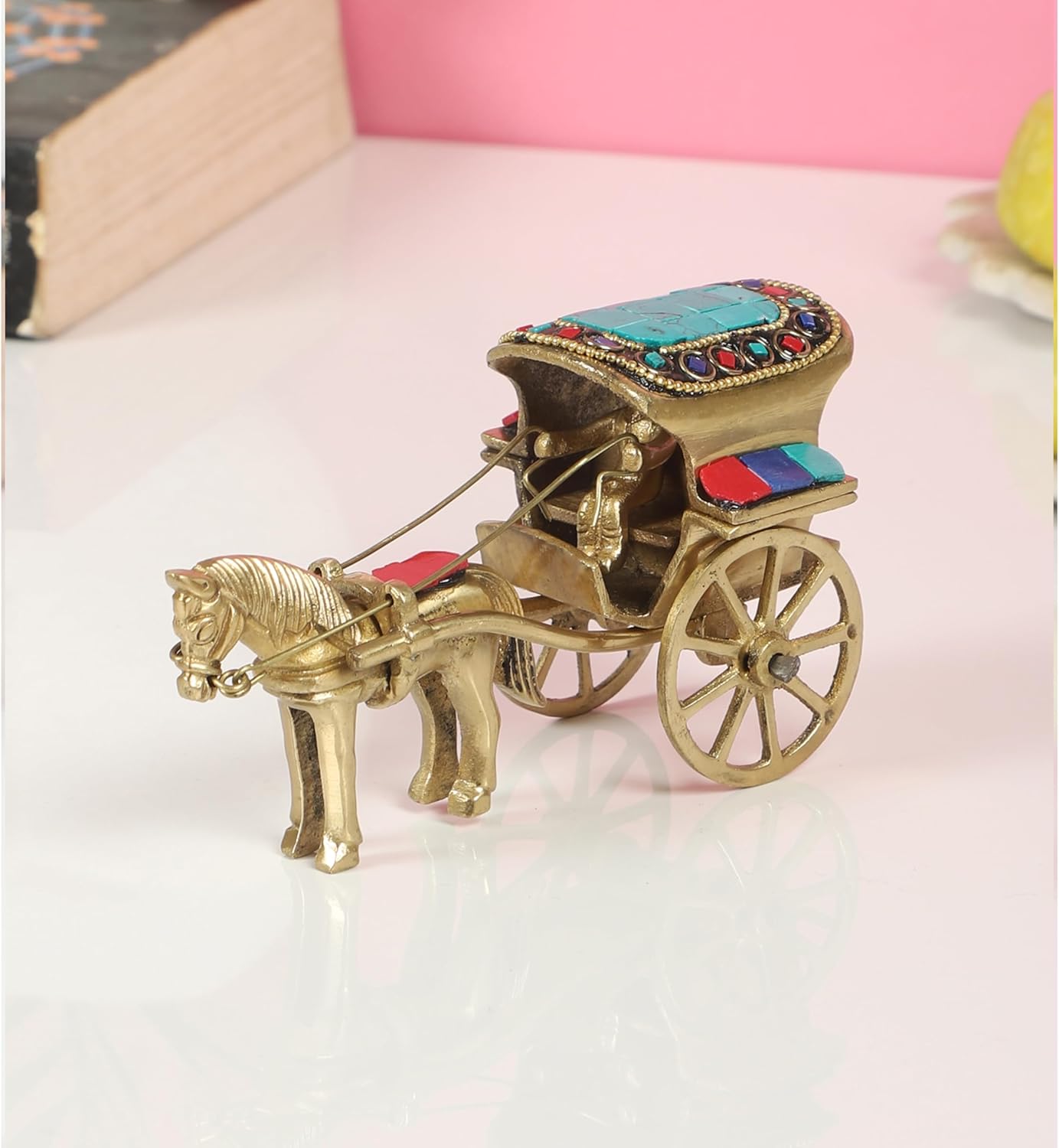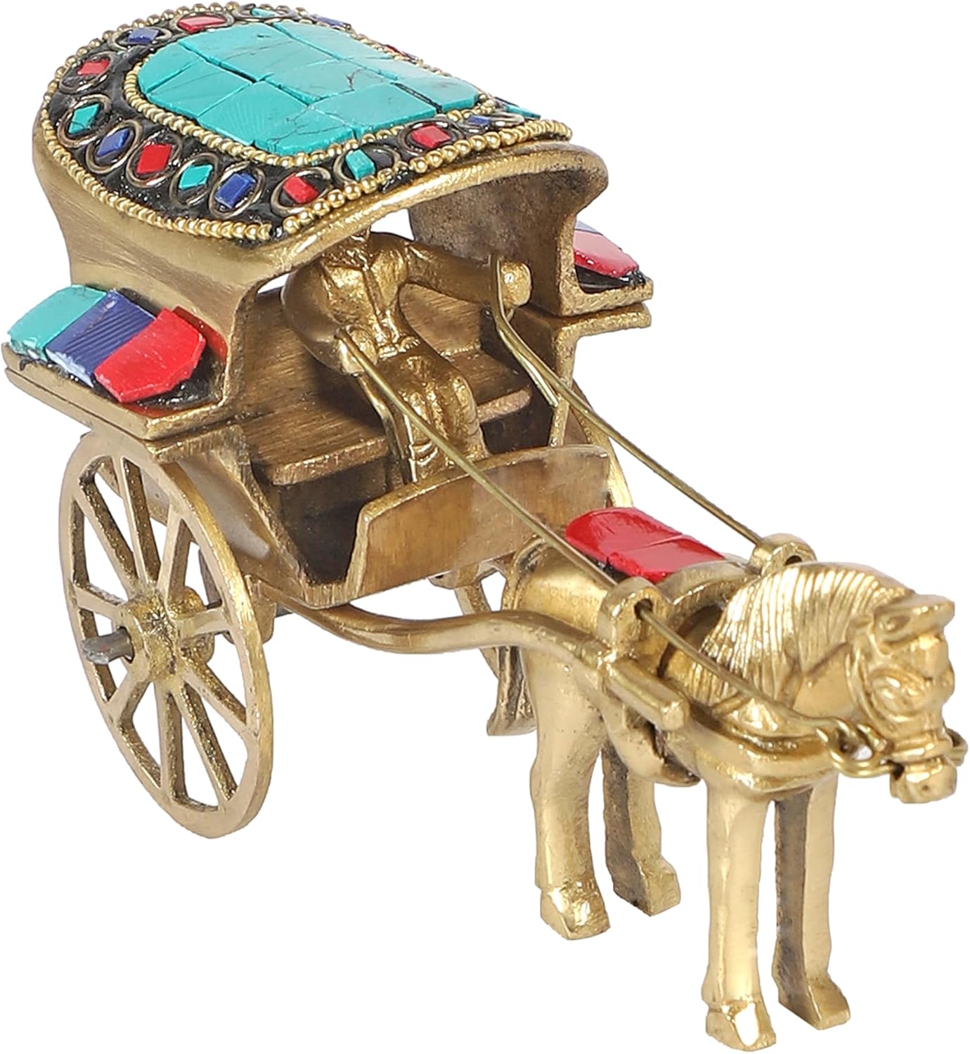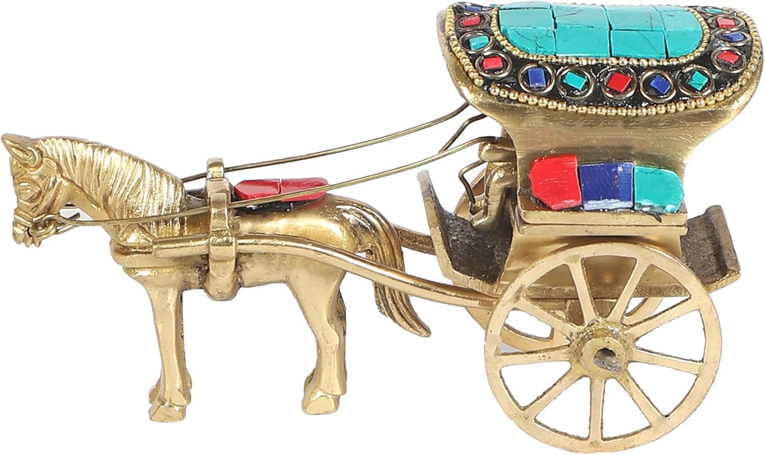 Amazon Brand – Umi Brass Horse Cart Showpiece, Gemstone Work Decor Showpiece, Standard Size