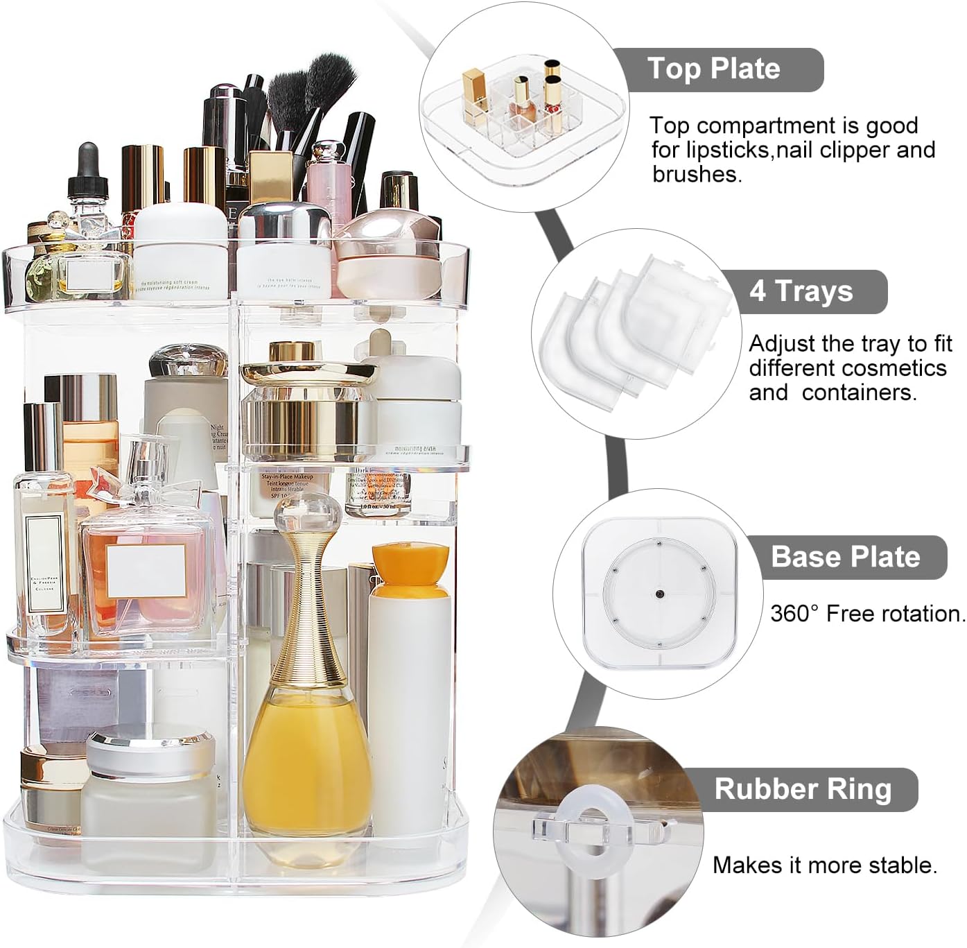 360 DEGREE ROTATING MAKEUP ORGANIZER: Perfectly organizes and stores your cosmetics and accessories; easy access to all of your makeup products.Fix it with rubber rings to make sure it is well secured