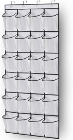 AMERTEER Hanging Shoe Organizer | Door Shoe Organizer | 24 Large Mesh Pockets Shoe Rack For Door | White Transparent Space Saving Shoe Organizer Door Hanger | Hanging Shoe Rack For Closet