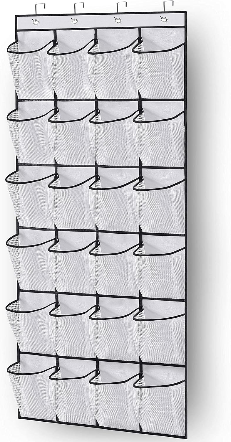 AMERTEER Hanging Shoe Organizer | Door Shoe Organizer | 24 Large Mesh Pockets Shoe Rack For Door | White Transparent Space Saving Shoe Organizer Door Hanger | Hanging Shoe Rack For Closet
