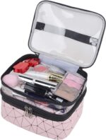 Portable & Convenient: Equipped with a carry handle, this compact travel makeup storage bag is perfect for on-the-go use, whether you’re traveling for business or leisure