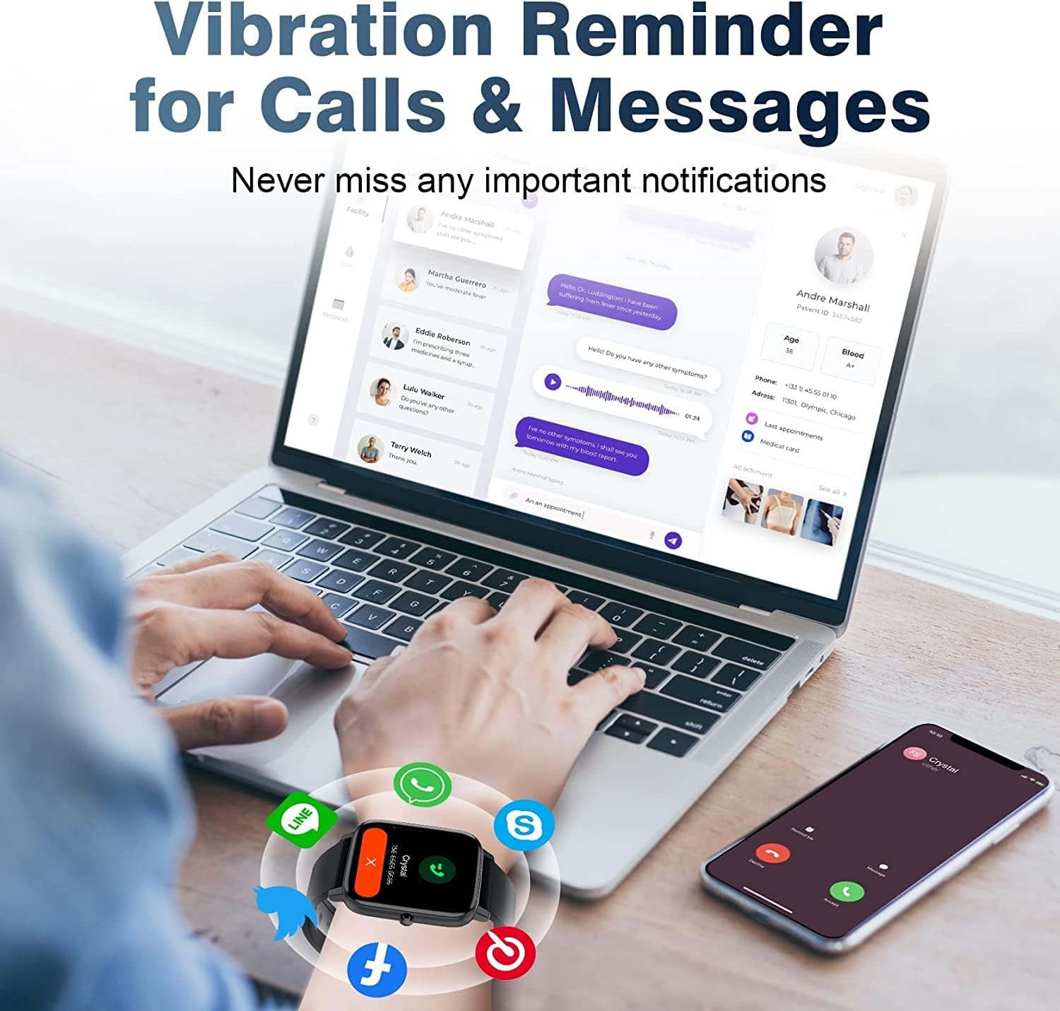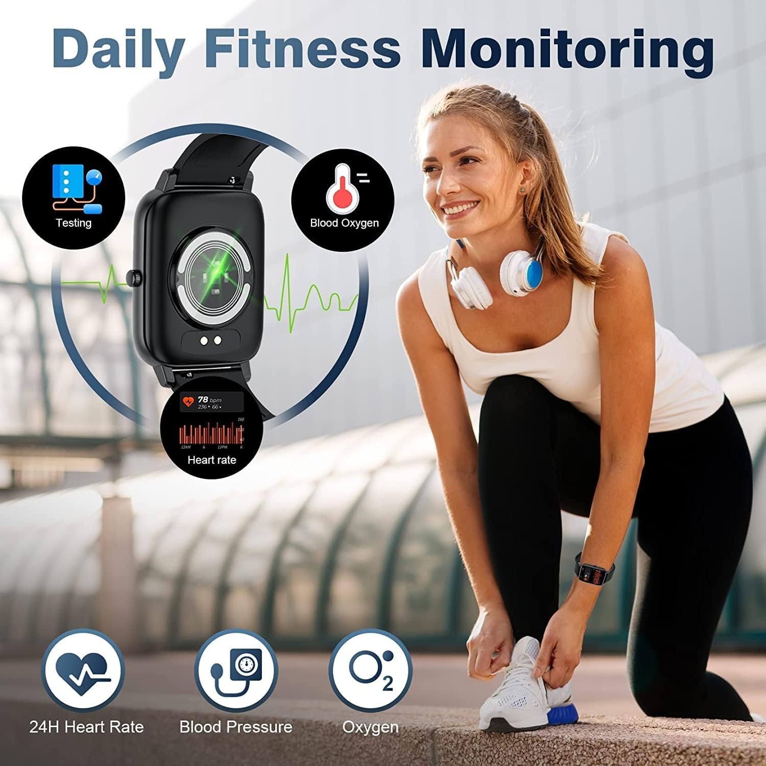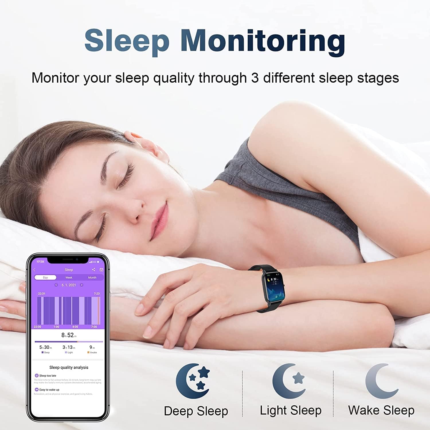 [24/7Real Time Heart Rate and Sleep Monitor]This smart watch has heart rate, blood pressure, blood oxygen monitor functions, always paying attention to your physical health, but the data is just used for reference. This smart watch can also measure your sleep automatically, which helps you know awake, light, and deep sleep data, and remind you to adjust your sleep habits. It’s a great gift choice for Mother’s Day and Valentine’s Day.