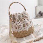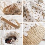 Andy’s Orchids Straw Shoulder Bag, Lace Bucket Bohemia Summer Handbag Vocation Woven Tote Crossbody Bag for Women, Grey