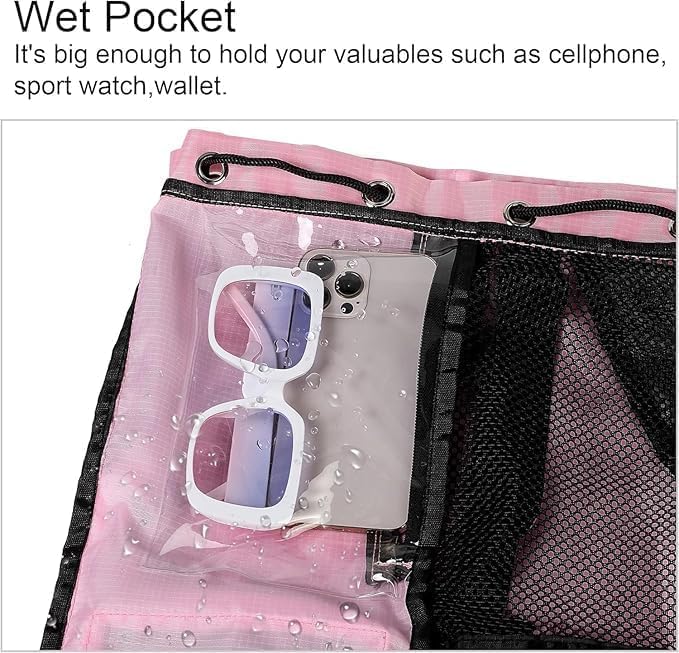 【ADJUSTABLE STRAP & LARGE CAPACITY 】Our swim bags for swimmers have adjustable shoulder straps, so that your shoulders are more comfortable. This mesh gym backpack measures 18.9 * 13.7 inches and is made of High-Density Oxford, can hold towels, clothes, gym gear, swimming gear, sports gear and more.