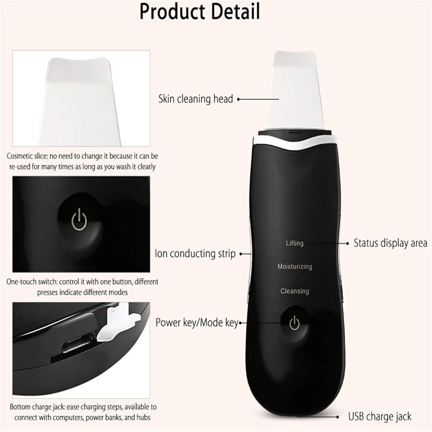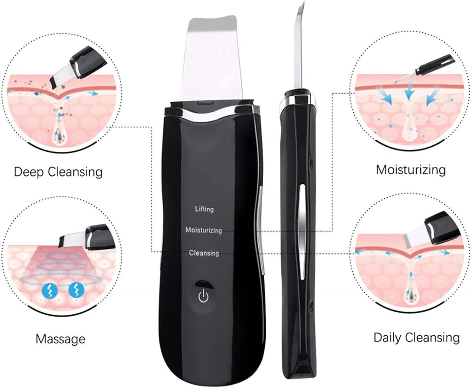 🌟【Material & Safe】Ultrasonic skin scrubber spatula is made of 100% stainless steel and allows for a professional exfoliation treatment. All devices and panels have been carefully tested and designed with your skin safety in mind.