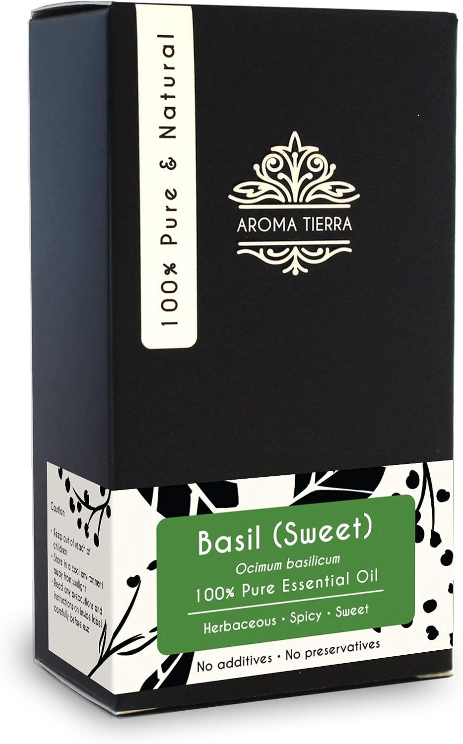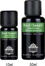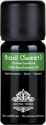 Aroma Tierra Basil Essential Oil (Sweet Basil) – 100% Pure, Natural, Therapeutic Grade – For Aromatherapy, Skin care, Massage, Diffuser, Beauty, Wellness – 10ml