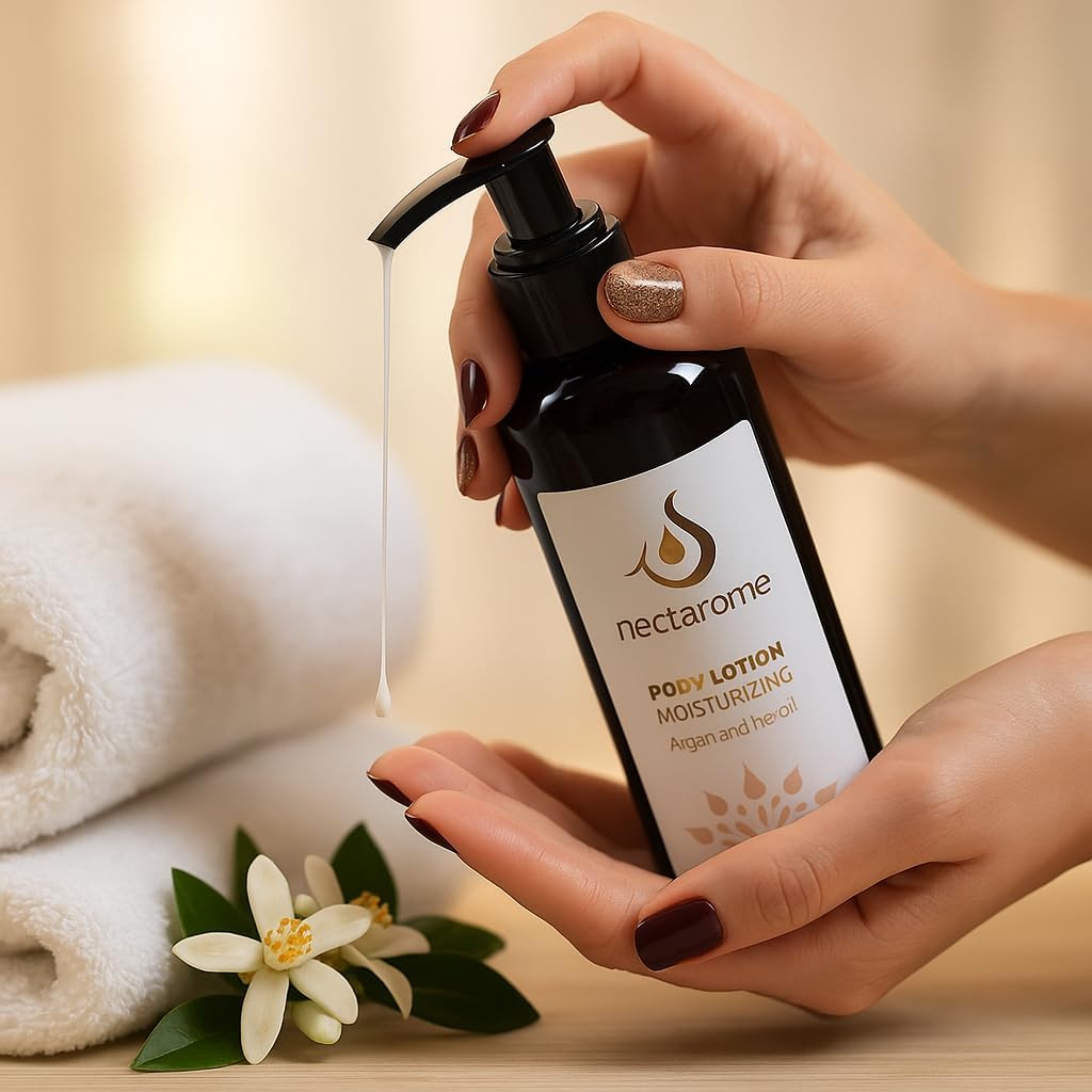 ✅ 𝗖𝗼𝗺𝗽𝗹𝗲𝘁𝗲 𝗦𝗸𝗶𝗻𝗰𝗮𝗿𝗲 𝗦𝗼𝗹𝘂𝘁𝗶𝗼𝗻: More than just a moisturizer, this body lotion delivers comprehensive care by repairing dryness, smoothing rough patches, and protecting against environmental stress. Argan oil strengthens elasticity, while Rose and Neroli promote overall skin health and resilience. With regular use, it transforms dry, uneven skin into a soft, glowing, and well-nourished complexion, making it an essential product in your daily self-care routine.