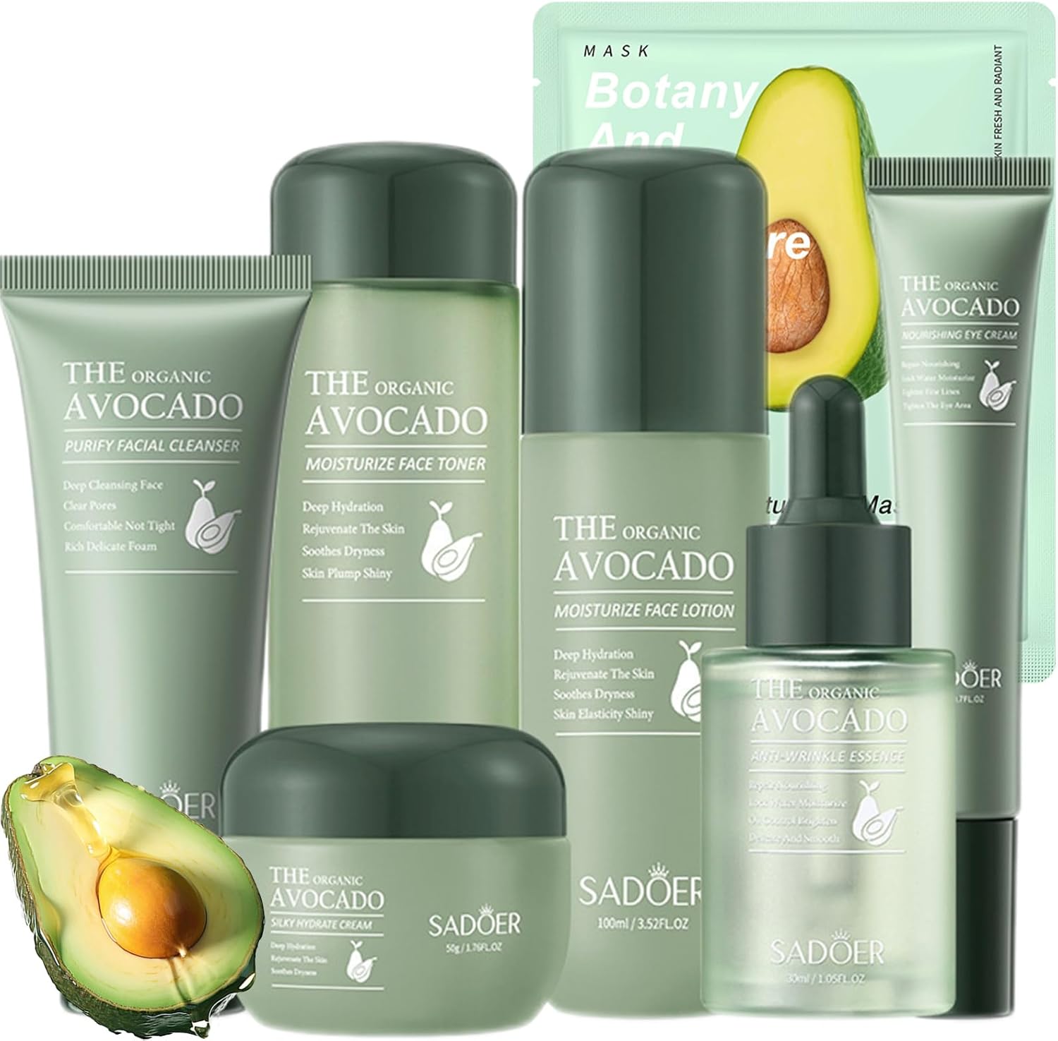 Avocado Skin Care Set, 11-In-1 Skincare Gift Set With Facial Cleanser, Face Serum, Face Cream, Eye Cream, Toner, moisturizing lotion& Facial mask. Skin Care Kit For Women Men