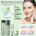 Mild Avocado Extract: Our skncare set contains with avocado essence gently repairs the skin, helps improve pores, clears acne. Its lightweight, non-greasy texture promotes absorption and long-lasting moisturization. Suitable for all skin types