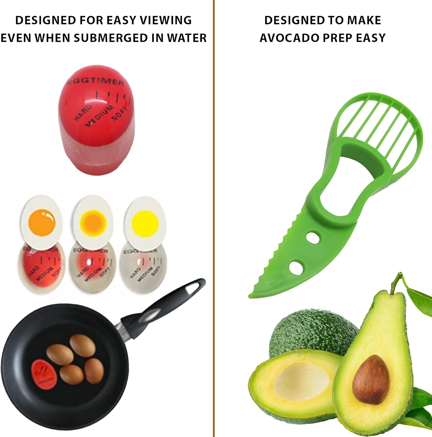 Avocado Slicer And Egg Timer Set – 3 In 1 Avocado Slicing Tool – Avocado Cutter, Peeler, Pitter & Scooper – Multifunctional Avocado Knife – Avocado Splitter – Easy to Use – Kitchen Gadgets