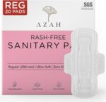 Azah Rash-Free Sanitary Pads for women | Organic Cotton Pads | Box of 20 Pads – without Disposable bags | MADE SAFE Certified (Regular)