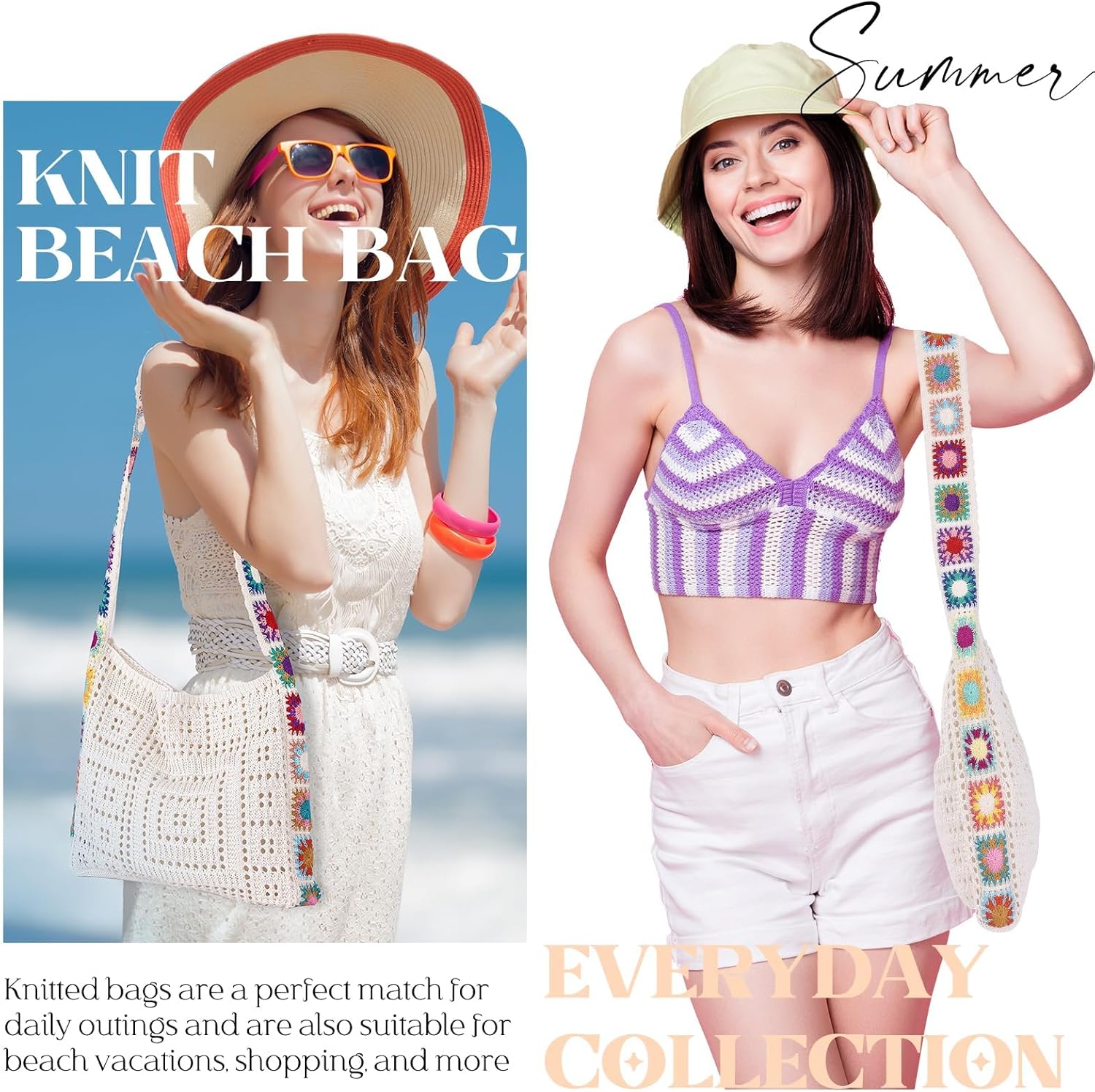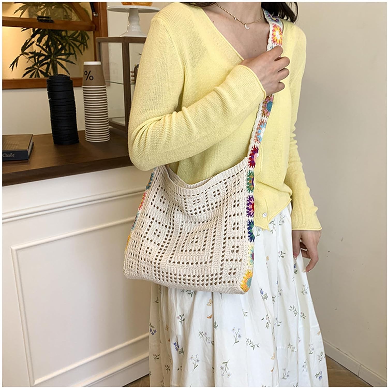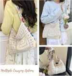Azonee Knitted Crochet Handbag for Women, Stylish Hollow Out Design, Casual & Outdoor Travel Bag (Beige)