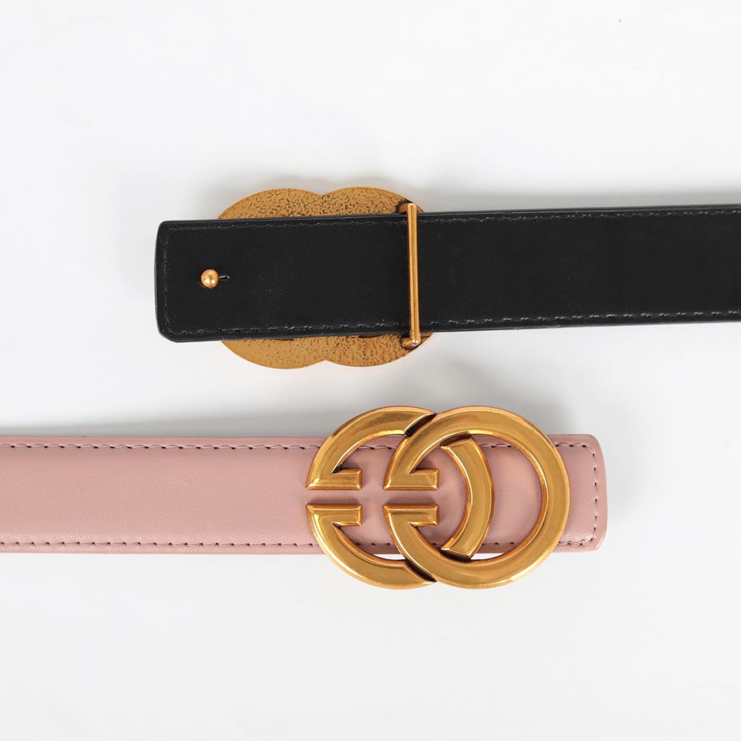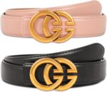 Azonee Leather Waist Belt, Women’s Chic Faux Leather Waist Belt, Women Leather Belts for Jeans Dresses Fashion Gold Buckle Ladies Waist Belt, 2 Pack