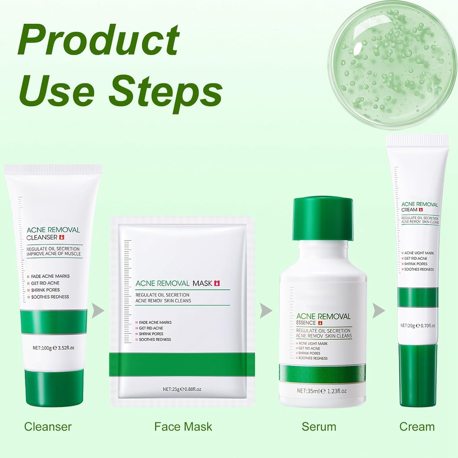 Azonee Women’s Skin Care Gift Set, Anti-Acne Skin Care Set, Cleansing Skin Care Set, Including Cleanser, Essence, Cream, Mask, Remove Facial Acne, Moisturize, Shrink Pores, Soothe Redness, Swelling